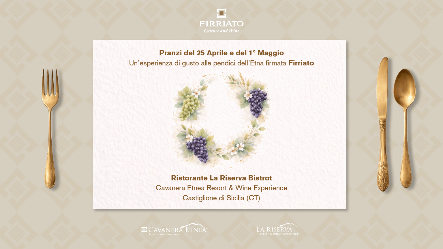 The culinary excellence of Executive Chef Andrea Macca meets Firriato wines, to create an unforgettable taste experience. Refined dishes, made with selected raw materials, gourmet creations and a special atmosphere will be the backdrop to an event not to be missed!